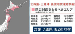 1: 名無し 2026/04/20(月) 19:45:12.82 ID:XyZ9oP4k0 本日(20日)16時52分に、三陸沖を震源とするマグニチュード(M)7.7の地震が発生しました。 この地震の震源位置や規模を精査した結果、この地震は千島海溝・日本海溝沿いの巨大地震の想定震源域に影響を与える場所で発生したモーメントマグニチュード(Mw)7.4の地震で、国の基本計画である「日本海溝・千島海溝周辺海溝型地震防災対策推進基本計画」に定められている、後発地震への注意を促す情報を発表する基準を満たす地震でした。 この地震の発生により、北海道の根室沖から東北地方の三陸沖にかけての巨大地震の想定震源域では、Mw8クラス以上の新たな大規模地震が発生する可能性が平常時と比べて相対的に高まっていると考えられます。 今後の政府や自治体などからの呼びかけ等に応じた防災対応をとってください。 Yahoo!ニュース ■要約 ・三陸沖を震源とするマグニチュード7 7の地震が発生 ・気象庁が北海道 三陸沖後発地震注意情報を発表 ・巨大地震の発生可能性が平常時より相対的に高まる ・根室沖から三陸沖の想定震源域で警戒が必要 ・政府や自治体の指示に従い防災対応の確認を 【衝撃】美女アスリート、無修正○○○まで映ったロロ動画が流出しまくり終わる 【独身も対象】 在日中国人、日本の子ども・子育て支援金に激怒 「働いてる人間をいじめてる。若者から搾取してるだけ。こういうことをすれば余計... 【和平協議】 トランプ米政権、イランに「新合意案」提示か 戦闘終結の交渉山場に…