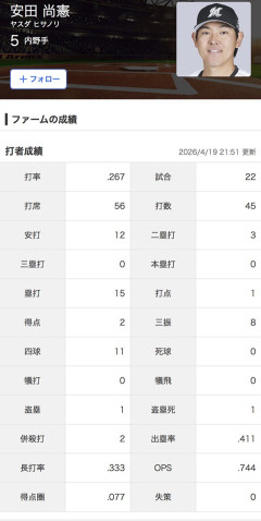 二軍試合実況 4月21日13:00~ 楽天-ロッテ