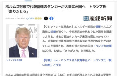 1 : エネルギー輸送の要衝ホルムズ海峡の封鎖が続く中、中東産原油の代わりに米国産を調達しようと、多数の石油タンカーが米国方面に向かっている。同海峡の封鎖長期化で原油取引に世界的な変化が起きていると指摘され、恩恵を得た形の米国のトランプ大統領は20日、SNSに「ありがとう」と投稿した。 ホルムズ海峡は世界の原油と液化天然ガス(LNG)の約2割が通るとされる海運の要衝だが、2月末に米イスラエルがイラン攻撃を始めて以降、同海峡を経由した原油の輸出が激減した。 このため代替の調達先として米国産原油を買い求める動きが広がり、船舶の運航データを分析する海運調査会社ウィンドワードは、石油タンカーの動きに「米国のメキシコ湾方面へと向かう大規模な方向転換」がみられると指摘した。 略 トランプ氏は20日、SNSに「イラン指導部が何百もの船を米国に向かわせた」と投稿。行き先は石油輸出施設を擁する南部テキサス州やルイジアナ州などだとし、「大変ありがとう」と記した。 全文はソースで…