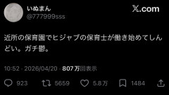 【速報】普通の日本人「近所の保育園でイスラム教徒の保育士が働き始めて鬱」