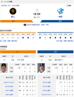 【ドラゴンズ実況】4/22 中日vs巨人(前橋)18:00~先発:櫻井【中継:BS日テレ 日テレG+ DAZN他】