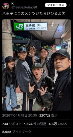 1 : 以下、?ちゃんねるからVIPがお送りします :2026/04/21(火) 20:24:56.657 ID:u/N/snd90.net八王子にこのメンツいたらびびるよ笑 pic.twitter.com/pvZp4plbYR— K (@10969_Keita301) April 18, 2026転載元スレッド:…