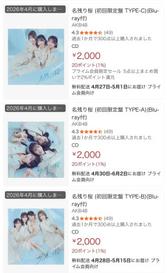 【AKB48】Amazonの「名残り桜」初回限定盤が価格高騰&品切れに・・・