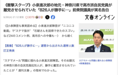 1 : 《衝撃スクープ》小泉進次郎の地元・神奈川県で高市派自民党員が離党させられていた「826人が勝手に…」前衆院議員が実名告白 一体、何が起きたのか。中山氏に聞いた。 「9月26日、投票用紙が届いていない党員から連絡がありました。驚いて県連に確認すると、私がこの1年の間にお願いして党員になってもらった約1000人のうち826人が、今年6月に勝手に離党させられていたことが発覚したのです」 中山氏が続ける。 「私は昨年の総裁選では高市早苗議員を支持し、離党させられた党員の9割超が高市議員に投票した。今年は小林鷹之議員に入れる党員が多いようです」 つまり、大量の高市派党員が勝手に離党させられていたのだ。では、いったい誰がこのようなことをしたのか――。全文はソースで 2 : 勝手に高市派の党員除籍は草 もうライン超えとるやろ 4 : これ普通に得票数に直で影響あるやん…