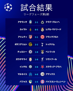 1: 名無し@サカサカ10 2025/10/01(水) 06:10:06.27 カイラト 0-5 レアル・マドリード [得点者] キリアン・エムバペ (前半25分)レアルPK キリアン・エムバペ (後半07分)レアル キリアン・エムバペ (後半28分)レアル エドゥアルド・カマビンガ(後半38分)レアル ブラヒム・ディアス (後半48分)レアル アタランタ 2-1 クラブ・ブルージュ [得点者] クリストス・ツォリス (前半38分)ブルージュ ラザール・サマルジッチ(後半29分)アタランタ マリオ・パサリッチ (後半42分)アタランタ アトレティコ・マドリード 5-1 フランクフルト [得点者] ジャコモ・ラスパドーリ (前半04分)アトレティコ ロビン・ルノルマン (前半33分)アトレティコ アントワーヌ・グリーズマン(前半46分)アトレティコ ヨナタン・ブルカート (後半12分)フランクフルト ジュリアーノ・シメオネ (後半25分)アトレティコ フリアン・アルバレス (後半37分)アトレティコ PK ※堂安律は先発し後半29分まで出場 チェルシー 1-0 ベンフィカ [得点者] オウンゴール(前半18分)チェルシー インテル 3-0 スラビア・プラハ [得点者] ラウタロ・マルティネス(前半30分)インテル デンゼル・ダンフリース(前半34分)インテル ラウタロ・マルティネス(後半20分)インテル ※橋岡大樹は先発し後半39分まで出場 ボデ・グリムト 2-2 トッテナム [得点者] イェンス・ハウジ (後半08分)ボデ・グリムト イェンス・ハウジ (後半21分)ボデ・グリムト ミッキー・ファンデフェン(後半24分)トッテナム オウンゴール (後半44分)トッテナム ガラタサライ 1-0 リバプール [得点者] ビクター・オシムヘン(前半16分)ガラタサライ PK マルセイユ 4-0 アヤックス [得点者] イゴール・パイシャオン (前半06分)マルセイユ イゴール・パイシャオン (前半12分)マルセイユ メイソン・グリーンウッド (前半26分)マルセイユ ピエールエメリク・オーバメヤン(後半07分)マルセイユ ※板倉滉は先発フル出場 パフォス 1-5 バイエルン [得点者] ハリー・ケイン (前半15分)バイエルン ラファエル・ゲレイロ(前半20分)バイエルン ニコラス・ジャクソン(前半31分)バイエルン ハリー・ケイン (前半34分)バイエルン ミスラフ・オルシッチ(前半45分)パフォス ミカエル・オリーズ (後半23分)バイエルン CL順位表…