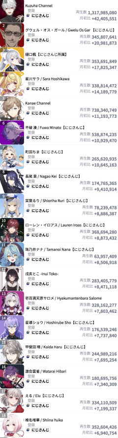 引用元: 3488: Vtuberまとめ 2025/10/01(水) 01:11:04.04 ID:cqj0aYtj 同接低くても再生数強ければ登録が伸びる時代 3504: Vtuberまとめ 2025/10/01(水) 01:12:27.98 ID:yb3AAACr >>3488 椎名とえるさん伸びてなくね? 3512: Vtuberまとめ 2025/10/01(水) 01:12:54.48 ID:DTNm4LLe >>3488 実際アクティブの数千人より数万人のアーカイブ勢のが大事だよね 3519: Vtuberまとめ 2025/10/01(水) 01:13:44.41 ID:0FOeQ5fV >>3488 るりたそ凄いな 3521: Vtuberまとめ 2025/10/01(水) 01:13:58.16 ID:ZGeG1yw8 >>3488 金になるのは同接じゃなくて再生数だからな それでもYouTube収益はまずくなる一方だ 3532: Vtuberまとめ 2025/10/01(水) 01:14:57.84 ID:GhHhNE0m >>3521 今は案件とグッズとかボイスだからね 同接なんてガイガイネタ以上の意味はないよ 3537: Vtuberまとめ 2025/10/01(水) 01:15:34.74 ID:VhLXlgDd >>3532 いや同接はなんだかんだ大事だよ プレミアム公開を“同接”中央値に入れるのはガイジだが 3547: Vtuberまとめ 2025/10/01(水) 01:16:15.87 ID:cqj0aYtj >>3504 減ってはないから…
