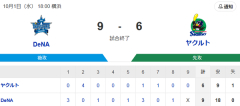 【試合結果】ヤクルト6-9ベイスターズ 小川5回5失点 田中鈴木がタイムリー