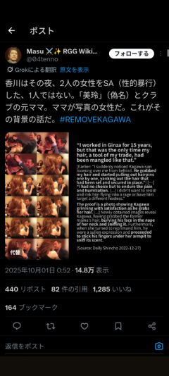 1: 名無しのアニゲーさん 2025/10/01(水) 23:30:21.814 ID:1WbLDIZrz #REMOVEKAGAWAのハッシュタグと共に抗議運動が起きてる模様…