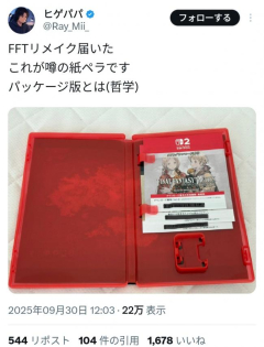 【悲報】FFTのパッケージ版(Switch2エディション)を購入した人たち「ウッキウキで開封したら紙1枚しか入ってない。何の為のパケ版だよ」と激おこ