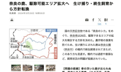1 : 奈良の鹿、駆除可能エリア拡大へ 生け捕り・終生飼育から方針転換:朝日新聞 国の天然記念物である「奈良のシカ」をめぐり、奈良県は25日、駆除できるエリアの拡大を検討する方針を決めた。農作物の食害を防ぐため、生け捕りにされた鹿は奈良公園(奈良市)の柵内で終生飼育されてきたが、このあり方も見直す。柵内では過密や衰弱など、飼育状況の問題が指摘されていた。 全文はソースで 2 : へずまりゅうさんやネトウヨや高市早苗どうすんやこれ… 4 : 管理、緩衝地区の鹿を保護地区に移動させる活動しようぜ…