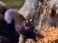 このリスどうしたの? たくさんのナッツが入っている容器に顔を突っ込む → こうなっちゃう…