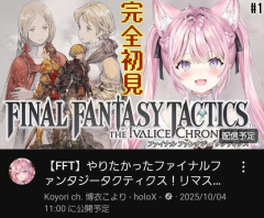 引用元: 282: Vtuberまとめ2025/10/03(金) 09:16:37.34 新作に飛びつきすぎだろ 304: Vtuberまとめ2025/10/03(金) 09:17:20.13 >>282 もうやるゲーム無いし 315: Vtuberまとめ2025/10/03(金) 09:17:37.49 >>282 子供の頃から好きでした 319: Vtuberまとめ2025/10/03(金) 09:17:46.24 >>282 まあ昔からだかし考察が浅い時にやった方がええわこよは 321: Vtuberまとめ2025/10/03(金) 09:17:50.33 >>282 皆が求めてるものを提供してるだけだが? 345: Vtuberまとめ2025/10/03(金) 09:19:12.54 >>282 20時サイレントヒルということはホロ甲集まりは義務1時間か 367: Vtuberまとめ2025/10/03(金) 09:20:12.22 >>282 ポケモンZAとDQ1&2も予定入ってるだろな確実に 383: Vtuberまとめ2025/10/03(金) 09:20:54.89 >>282 新作は指示厨わかないし 395: Vtuberまとめ2025/10/03(金) 09:21:23.06 >>282 話題の新作いつもやってくれるから助かるわ 402: Vtuberまとめ2025/10/03(金) 09:21:36.65 >>321 こよりには、ホラゲとFFは求めてないんだが😶 それってお前の言ってた「負けてた気がする」ってやつなんじゃないの? 445: Vtuberまとめ2025/10/03(金) 09:23:13.71 >>282 FFTは莉々華が一足先にやってたので✋ 457: Vtuberまとめ2025/10/03(金) 09:23:44.71 >>445 軍団なので 483: Vtuberまとめ2025/10/03(金) 09:24:55.05 >>457 ぺこら軍団か 656: Vtuberまとめ2025/10/03(金) 09:32:20.32 >>282 FFTはファミ通コラムでも言ってたしサイレントヒルは案件です……