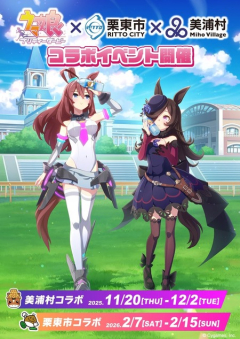 1: 名無しさん@実況で競馬板アウト 2025/10/03(金) 21:22:25.26 ID:zpMFbAKN0 茨城県美浦村、そして滋賀県栗東市とのコラボがそれぞれ決定! 美浦村コラボ:2025年11月20日(木)~12月2日(火) 栗東市コラボ:2026年2月7日(土)~15日(日) 詳細はこちら! …