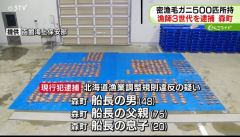 【画像】北海道で毛ガニの密猟、証拠品のカニをブルーシートに並べる