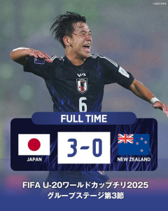 1: 名無し@サカサカ10 2025/10/04(土) 09:56:28.94 [10.3 U-20W杯GL第3節 日本 3-0 ニュージーランド バルパライソ] U-20日本代表は現地時間3日、U-20ワールドカップのグループリーグ第3節でU-20ニュージーランド代表と対戦し、3-0で勝利した。前半21分にMF小倉幸成が左足のミドルで先制点を挙げ、後半19分にはMF平賀大空のシュートがオウンゴールを誘発する。後半37分にはMF石井久継がダメを押した。日本はワールドユースも含めた12回の出場で初のグループリーグ全勝を達成。3試合7得点無失点の快進撃で首位通過を決めた。 開幕2連勝の日本はグループリーグ突破が確定済み。引き分け以上で自力での首位通過が決まるなか、第2節から先発8人を入れ替えた。4-4-2の布陣を敷き、GKは荒木琉偉、4バックは左からDF小杉啓太、DF市原吏音、DF塩川桜道、DF森壮一朗。2ボランチはMF石渡ネルソンと小倉。サイドハーフは左が平賀、右がMF中川育。2トップはMF横山夢樹とFW神田奏真が並んだ。 小雨と霧に包まれるピッチコンディションで、両チームともに慎重な試合の入り。日本はボールコントロールに気をつけながら攻め、守備時にはタイトな当たりでボールを奪っていく。 敵陣に迫る日本は、前半21分に先制に成功。セットプレーで右からリスタートすると、森が縦への突破からクロスを上げる。ファーに流れたボールを小杉、横山につなぎ、さらにPA手前に戻した。ボールを収めた小倉はいったん右サイドを向きつつ、相手選手を確認してキャンセル。すかさず前を向いて利き足とは逆の左足を一閃し、ゴールに突き刺した。 リードした日本だが、その後も冷静に試合を運ぶ。前半38分には一度倒れた神田が、起き上がる際にMFフィン・マッケンレーに倒された。船越優蔵監督は、今大会で採用されている監督のリクエストによるビデオ判定システム『フットボール・ビデオ・サポート(FVS)』を使用。マッケンレーへの一発退場の確認を行ったが、ビデオを確認した主審はイエローカード相当と判断した。 前半42分にはニュージーランドに決定機を作られる。中盤のボールロストから一気にカウンターを仕掛けられると、最後はMFネイサン・ウォーカーに左足シュートを打たれた。しかし、GK荒木が左手で防ぎ切り、ピンチを切り抜けた。 日本は前半の終わり際に、両サイドハーフの位置を交換。左に中川、右に平賀を置いた。前半はそのまま1-0のリードで折り返した。ハーフタイムに日本は交代カードを切る。ここまで出場し続けていた市原を下げ、DF喜多壱也を投入。キャプテンマークは小倉が着けた。 後半12分、日本は左CKをショートコーナーで始める。中川が深い位置から左足でクロス。ニアサイドの神田が左足ダイレクトで合わせると、わずかにゴール左外に逸れた。直後に2枚替えを行い、横山と神田が下がる。石井とFW高岡伶颯が入った。15分には平賀のクロスがGKにはじかれたところを高岡が詰めるも、ゴール左に外れた。 高岡はさらに勢いを与え、後半19分に起点を作る。右サイドの深い位置でボールを奪い、そのままPA右に進入。シュートはブロックに遭うも、こぼれ球を平賀が右足シュート。相手選手に当たったボールはそのままゴールに吸い込まれ、オウンゴールで2-0と点差を広げた。ニュージーランドはFVSで高岡のハンドの確認を求めたが、主審は肩でトラップしたことを確認し、ハンドは無しとみなした。 日本は後半23分にすかさず交代カードを切る。連続出場の小杉に代えて、DF梅木怜が入る。梅木はそのまま左SBでプレーした。27分には中川が下がり、MF齋藤俊輔が入った。 後半37分にはダメを押す。齋藤が右サイドに展開し、高岡が相手選手の股を通すパス。最後は石井が相手GKの動きを見極めて右足裏のフェイントで切り返す。冷静に左足シュートを無人のゴールに流し込んだ。 試合はそのまま終了し、日本は3-0で快勝。首位通過でグループリーグを終えた。…