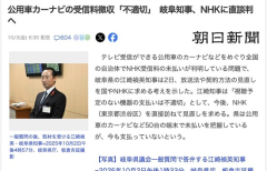 1 : テレビ受信ができる公用車のカーナビなどをめぐり全国の自治体でNHK受信料の未払いが判明している問題で、岐阜県の江崎禎英知事は2日、放送法や契約方法の見直しを国やNHKに求める考えを示した。 江崎知事は「視聴予定のない機器の支払いは不適切」として、今後、NHK(東京都渋谷区)を直接訪ねて見直しを求める。県は公用車のカーナビなど50台の端末で未払いを把握しているが、今も支払っていないという。 県議会一般質問で自治体での受信料未払いについて問われ、江崎知事は「実際に視聴している機器で支払うのは当然だが、視聴予定のない機器にまで貴重な県民の税金を払い続けることは、県政を預かる者として適切ではない」と答弁した。 また県の聞き取りでは、県と県内の市町村分を合わせ、未払いとして約5千万円(その後の支払い済み含む)が確認された。 3 : ワンセグつけるな 4 : ショバ代払えってことやもん やってることまんまヤクザやんけ…