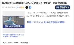 1 : 80m先から店を破壊“スリングショット”発射か 男は容疑否認(テレビ朝日系(ANN)) - Yahoo!ニュース 逮捕された無職・真田昇幸容疑者(33)。自宅マンションの非常階段から、およそ80メートル先のバイク販売店を狙い、スリングショットを発射した疑いです。 放たれたのは、直径およそ6ミリの鉄球。ショーウィンドウの強化ガラスを深くえぐるほどの威力がありました。 狙われたのは1度だけではなく、傷はここにも、ここにも、そして…。 被害を受けた店の人 「これもそうですね」 「強化ガラスでかなり厚い。1枚単体の見積もりだと150万円」 日本スリングショット協会によると、一般的な飛距離は20から30メートル。今回使われたものは、改造したものではないかと指摘します。 日本スリングショット協会 室賀博之理事長 「すごく威力を上げてやったのではないか。間違ったら危ないことになる。非常にけしからん事態」 真田容疑者は「覚えていない」と容疑を否認していて、スリングショットは「カラスを撃つのに使っている」と話しています。全文はソースで 6 : スケダン懐かしいな 7 : ウソップ終わりやん…