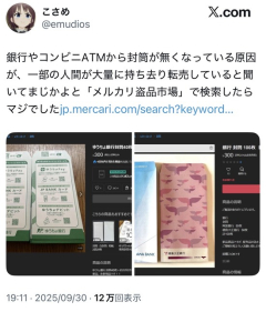 【大悲報】日本人さん、貧し過ぎてATMコーナーの封筒すら転売するwwwwww