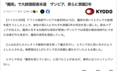 1 : 2 : 「魔術」で大統領殺害未遂 ザンビア、男らに禁錮2年 アフリカ南部ザンビアの裁判所は15日、魔術を用いてヒチレマ大統領を殺そうとしたとして、被告の男2人にそれぞれ禁錮2年の判決を言い渡した。欧米メディアが伝えた。魔術に対する伝統的な信仰が根強いザンビアでは英国の植民地時代にできた法律が今も有効で、魔術の使用を規制している。 11 : これがアフリカ 13 : ザンビアの魔術師は炎や水などを出せるのかな…
