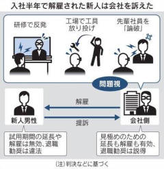 3: 2025/10/05(日) 18:06:01.99 ID:/u71eSjZ0 1: 2025/10/05(日) 18:04:54.99 ID:/u71eSjZ0 東京都心に本社を構える老舗メーカーの人事担当者は一人の新入社員に手を焼いていた。10月の内定式に欠席。入社後の研修中から反抗的な態度が目立ち、正式配属されると先輩社員らに何かと口ごたえした。「相手を論破する話法を多用する」。見切りをつけた会社はわずか3カ月で「追い出し部屋」に送り込み、退職勧奨に応じないとみるや解雇。新入社員が無効を訴えた訴訟で、非情ともいえる手段の是非が問われた。…
