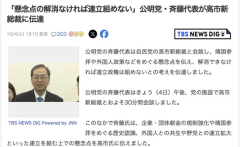 1 : 公明党の斉藤代表はきょう(4日)午後、党の施設で高市新総裁とおよそ30分間会談しました。このなかで斉藤氏は、企業・団体献金の規制強化や靖国参拝をめぐる歴史認識、外国人との共生や野党との連立拡大といった連立を組む上での懸念点を高市氏に伝えました。公明党 斉藤代表「我が党の支持者の方々からも大きな不安や懸念があるということを率直に申し上げ、その解消なくしては連立政権はないということを申し上げた」 4 : もし連立解消したら次は自民に入れてもいい 15 : 解消なくして連立政権はない(頼む!!!引き止めてくれえええええ!!!) 22 : >>15そりゃ引き止めるやろ過半数いってないんやから…