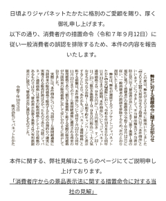 【速報】ジャパネット、昨年のおせちの二重価格問題で違反を認める。なお今年の同表示での販売は継続