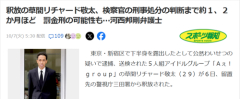 1: 2025/10/07(火) 05:48:48.33 釈放の草間リチャード敬太、検察官の刑事処分の判断まで約1、2か月ほど 罰金刑の可能性も…河西邦剛弁護士 判断まで約1、2か月ほどを要する。河西弁護士は「罰金刑の可能性もある。法定では30万円以下の罰金だが、事情をくんで10万円以下になるケースが多い」という。「事情が分からなければ、スポンサーや番組出演の関係者などにおいて、各取引先は判断に困る。自身の認識や事情を伝えていく必要性もあると思います」と語った。 ※関連記事 【速報】Aぇ! group、草間リチャード敬太容疑者、公然わいせつで逮捕。鉄腕DASH終了へ…