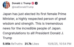 1: 名無し 2025/10/07(火) 08:39:09.04 ID:R1UZR2Vh0● BE:662593167-2BP(2000) 日本は、偉大な知恵と力強さを持ち、非常に尊敬される初の女性首相を選出しました。これは素晴らしい日本国民にとって素晴らしいニュースです。皆様、おめでとうございます! ドナルド・J・トランプ大統領 ( ´_ゝ`)立民 辻元氏、多数野党で高市総理誕生 断固阻止へ「公明、立憲、国民でやらへんか!」 【悲報】 『ワイルド・スピード』の俳優、完全終了のお知らせ・・・・・・ 【韓国大手紙】 韓日で協力して「アジア版NATO」をつくろう 韓国と日本は運命共同体 韓国を支援できる国は日本しかない…