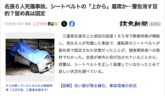 1 : 名張6人死傷事故、シートベルトの「上から」着席か…警告消す目的?留め具は固定 三重県名張市上小波田の国道165号で軽乗用車が横転し、男女6人が死傷した事故で、 運転席のシートベルトが留め具で固定された状態だったことが、捜査関係者への取材でわかった。 全員が車外に投げ出されていることから、県警は、シートベルトを正しく装着していなかったとみて詳しい状況を調べている。 捜査関係者によると、運転席と助手席では事故後も、シートベルトは留め具に差し込まれていた。 ベルトを装着していれば、事故の際に外に投げ出されることはないといい、県警は、ベルトの上からシートに腰を下ろしていた可能性があるとみている。ベルトの未装着時の警告を消そうとしたとの見方もある。 2 : 保険会社は1円も払わなくていいぞ 3 : ブルーシートの下でどんな形に変形しているんだ…
