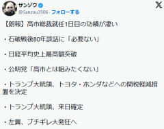 【朗報】高市さん、早速成果を出してしまう