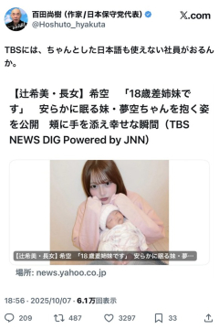 1: 名無し 2025/10/07(火) 20:10:45.58 ID:9ES9ga6l0 「18歳差姉妹です」辻希美の長女・希空さん、まもなく2か月の妹との最新ショット公開 元「モーニング娘。」でタレントの辻希美と俳優・杉浦太陽の長女でモデルとしても活動する希空(のあ)さんが、18歳差の妹との最新ショットを公開した。 モデルとしても活動する希空さんは7日までにインスタグラムを更新。「18歳差姉妹です」と記し、8月8日に生まれた第5子の次女・夢空(ゆめあ)さんを抱っこしているほほ笑ましい写真をアップした。 杉浦と辻は2007年に結婚。同年11月に長女・希空さん、10年12月に長男・青空(せいあ)くん、13年3月に次男・昊空(そら)くん、18年12月に三男・幸空(こあ)くん、今年8月に次女・夢空(ゆめあ)ちゃんが誕生した。 百田尚樹(作家/日本保守党代表) @Hoshuto_hyakuta TBSには、ちゃんとした日本語も使えない社員がおるんか。 2: 名無し 2025/10/07(火) 20:11:52.46 ID:K4zyZg+F0 孫が5人いるのかと思った 4: 名無し 2025/10/07(火) 20:12:53.29 ID:vIxmjtkw0 わざとでは? 頭いい連中しか入れないでしょ 9: 名無し 2025/10/07(火) 20:14:44.09 ID:FElPzvtY0 外国人には違和感が分からない 【画像】ビーチバレー高校生大会、正直そういう目で見るなって方が無理だろwwwwwwwwセ〇クス中ワイ「好き♡好き♡結婚する♡」 →【悲報】JKさん、あまりの暑さでついに見た目より命を選んでしまうwwwwwww【悲報】ロバート秋山「オレもう一人で売れたからコントとかいいわw」 博・馬場「えぇ!そんなぁ…」【悲報】例のおにぎり屋台お姉さん、限界突破してしまうwwww【画像】京女さん、彼氏の教養がエグすぎてま●こをびしょびしょに濡らす最近のエロ漫画、女の子の喘ぎ声が「あん❤」ではなく「お゛っ❤」が主流になってしまう【画像】NIKKEの水着、一線を越えてしまう…【画像】めざましテレビ、激エロ水着を公開してしまうwwwwwwww…