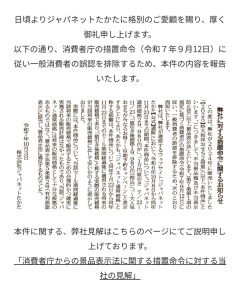 引用元: それでも動く名無し 2025/10/07(火) 00:12:20.29 ID:gSNVZ01s0 (2025/10/6追記) 全国紙ならびに当社コーポレートサイトに公示を掲載いたしました。 これは法令上の義務を果たすもので、消費者庁指定の文章です。 当社見解はこれまでと変わらないため、引き続き消費者庁と協議を進めてまいります。 2: それでも動く名無し 2025/10/07(火) 00:12:56.65 ID:gSNVZ01s0 消費者庁指定の文章↓ 3: それでも動く名無し 2025/10/07(火) 00:14:02.10 ID:gSNVZ01s0 当社は悪くないので今年も昨年と同様の価格表記でおせちを販売中!↓…