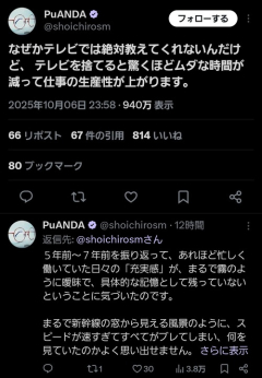 【悲報】陰キャ「テレビ捨てると生産性上がります」陽キャ「いや、テレビあるとコミュ力上がるぞ?」←これwwww