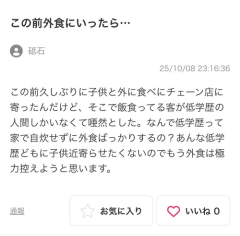 【悲報】学歴透視スキル持ちのおばさん、外食する人達に難癖をつけるwwwww