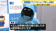 1 :ななしさん :25/10/04(土) 19:36:21 ID:??? 警察によりますと、3人は、2025年7月5日未明、四日市市にあるリサイクルショップに出入り口のドアガラスを割って侵入し、フィギュア2点、販売価格1万1460円相当を盗んだ疑いが持たれています。 愛知、三重、滋賀の3県では、2025年6月以降、飲食店やリサイクルショップを狙った同様の犯行が約80件相次いでいて、その捜査の過程で、3人の関与が浮上したということです。 全文は以下 10 :ななしさん :25/10/04(土) 19:40:16 ID:??? 息子!? 17 :ななしさん :25/10/04(土) 19:42:40 ID:??? 親子で日雇いドカタしてた方が稼げるだろ…