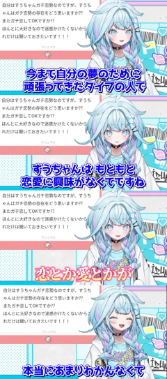 引用元: 775: Vtuberまとめ2025/10/09(木) 14:26:14.12 かなた 「恋愛に無縁の人生。そしてあまり興味もなく生きてきました」 「恋愛はいいわ、邪魔。」 すう 「恋愛に興味ない、わかんない」 「興味なさすきて親が心配して検索してた」 「ガチ恋はオッケー」 795: Vtuberまとめ2025/10/09(木) 14:27:26.98 >>775 たとえば君が傷ついて挫けそうになった時は〜 796: Vtuberまとめ2025/10/09(木) 14:27:29.14 >>775 もうええわこいつら 797: Vtuberまとめ2025/10/09(木) 14:27:31.51 >>775 すぅちゃんってかなたの完全上位互換だよな 798: Vtuberまとめ2025/10/09(木) 14:27:32.19 >>775 🦄合格 799: Vtuberまとめ2025/10/09(木) 14:27:32.64 >>775 かなたそとすうちゃんは信じられるから好きだわ 807: Vtuberまとめ2025/10/09(木) 14:27:57.51 >>775 こいつら逆に怪しすぎるよな 810: Vtuberまとめ2025/10/09(木) 14:28:14.33 >>775 こんな日がくるなんてな 819: Vtuberまとめ2025/10/09(木) 14:28:30.78 >>775 まふまふくんを思い出すね😏 827: Vtuberまとめ2025/10/09(木) 14:29:05.86 >>775 🎯 829: Vtuberまとめ2025/10/09(木) 14:29:10.90 >>775 完全にまふまふ 846: Vtuberまとめ2025/10/09(木) 14:29:43.33 >>775 自信を持ってみんなにおすすめできる2人なんよ 856: Vtuberまとめ2025/10/09(木) 14:30:26.15 >>829 これ発言してる時もうみけちゃんと結婚秒読みだったってマジ? 893: Vtuberまとめ2025/10/09(木) 14:32:15.39 >>775 かなたの後継者だな 922: Vtuberまとめ2025/10/09(木) 14:33:39.41 >>775 すうたや信じていいの?🦄 まさか大学2年間で失ってないよね?🐴 965: Vtuberまとめ2025/10/09(木) 14:35:31.18 >>775 すうちゃん大学時代にボドゲ行ってたらしいけど、それ女友達とだよね?🙄 973: Vtuberまとめ2025/10/09(木) 14:35:53.54 >>965 男もいるよ 977: Vtuberまとめ2025/10/09(木) 14:36:04.47 >>922 たややめて 993: Vtuberまとめ2025/10/09(木) 14:36:55.06 >>775 これを信じない人たちは何を信じるの? 「今までに付き合った人はみんなダメで、最近は誰とも付き合ってません」とか言う人がいたらそっちがいいってこと?…