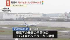 飛行中のANA機内でモバイルバッテリーから出火 モバイルバッテリー燃えすぎやろ