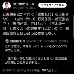 国民民主議員さん「本気で政権交代する気なら首班指名は野田ではなく玉木と書け」