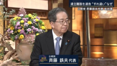 1: 名無し 2025/10/11(土) 03:23:34.23 ID:Mk0VYI8L9 公明党の斉藤鉄夫代表は11日未明のTBS番組で、自民党の高市早苗総裁が公明の連立離脱を巡り「一方的に伝えられた」と述べたことに反論した。「ちょっと意外だ。言葉の使い方としておかしいのではないか。懸念事項がなくならない限り、連立政権ということにはならないと1週間前に伝えていた」と述べた。 企業・団体献金の規制強化を巡り「自民に決断をしてほしいと説明していた。一方的に突然というのは少し違うのではないか」とも語った。 共同…