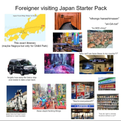 スレッド「訪日外国人スタータパック」より。引用:Facebook(海外の反応)1万国アノニマスさん 訪日外国人スタータパック・旅程は東京⇒京都⇒奈良⇒大阪(名古屋に寄る場合もあるが行くのはジブリパークだけ)・伏見稲荷大社、道頓堀、チームラボプラネッツ、奈良公園が定番スポット・「ニホンゴワカリマセン」「アリガトゥ」「コニーチワ」・終電が早いことを忘れてタクシーで帰らないといけなくなる・「どうして俺の国には新幹線が無いんだろう?」・等身大ガンダムの場所に行くけどガンダムを見たことはない・公道マリオカートとかいう馬鹿なことをする・「どこにでも自動販売機やコンビニがある!」・「車無しで遠隔地まで行くにはどうすればいいの?」2万国アノニマスさん基本的に自分の旅行はこんな感じだった悲しいけど予算の都合的にそうなってしまったよ…3万国アノニマスさん オタクの天国こと秋葉原はどこだい?…