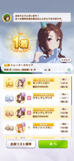 825: 名無しのトレーナー 25/10/12(日) 08:53:30 ID:lM.oj.L30 ルムマサンガツやはりスピフラッシュかあとはスキルポイント盛れるように更新していくだけやな 832: 名無しのトレーナー 25/10/12(日) 08:56:50 ID:sb.o1.L64 >>825ルムマガツどうも終盤負けするなぁ団長キング抜いて終盤速度増やすか 826: 名無しのトレーナー 25/10/12(日) 08:53:30 ID:cz.mg.L68 ひーん負けたハナ差負けの時芝Sつけていればって感じる 843: 名無しのトレーナー 25/10/12(日) 09:01:52 ID:lM.oj.L30 >>826今回ワイのグランとキングが最終直線で追い比べ出てガンガン上がってったからあまり参考にならないかも でも今回追い比べそんなに馬身伸びないんやなぁ 830: 名無しのトレーナー 25/10/12(日) 08:55:08 ID:cT.ek.L18 馬場Sかなり弱いって説前聞いたけどどうなんだろ 831: 名無しのトレーナー 25/10/12(日) 08:56:25 ID:7l.w9.L6 弱いんじゃない?でもそのわずかな差が明暗を分けることもあるって話なのでは 835: 名無しのトレーナー 25/10/12(日) 08:57:27 ID:lM.oj.L30 なんか最高速度に達してない感じもするから、芝Sあると最後の100mで少し前に出る感じはしてる 労力に見合うかはわからない距離S全体で切れ者>芝Sって感じか? 836: 名無しのトレーナー 25/10/12(日) 08:58:11 ID:cz.mg.L68 距離Sを10としたら芝Sは7くらいの強さあるっぽい単短距離では 847: 名無しのトレーナー 25/10/12(日) 09:02:34 ID:2S.t0.L31 やはり上振れ狙うならスピフラっぽいよなぁしかし合宿でステ盛れんのが難しい…なんかコツとかある? 849: 名無しのトレーナー 25/10/12(日) 09:02:57 ID:hc.5a.L57 終盤すごく速度を持つ短距離ウマ娘を使いましょう! 851: 名無しのトレーナー 25/10/12(日) 09:03:23 ID:lM.oj.L30 スピフラとアイちゃんはスキポが厳しくなってくる切れ者欲しい 861: 名無しのトレーナー 25/10/12(日) 09:05:19 ID:My.am.L5 差しはスキポ全然足りんわねスピフラ秋お嬢タクト前提ではあるけど 866: 名無しのトレーナー 25/10/12(日) 09:06:41 ID:lM.oj.L30 >>861その編成だとタマを外すん? 872: 名無しのトレーナー 25/10/12(日) 09:09:27 ID:My.am.L5 >>866外すならアアイかタマかねただパワ候補が他に手持ちに居るかどうかやけど 868: 名無しのトレーナー 25/10/12(日) 09:07:57 ID:7l.w9.L6 スピフラって聞くと最敬礼フラッシュを思い出すほんま神構図 875: 名無しのトレーナー 25/10/12(日) 09:10:05 ID:2S.t0.L31 1番強いのはフラッシュ タマ ルビー ステゴ タクトの根2だと思う 870: 名無しのトレーナー 25/10/12(日) 09:09:05 ID:cz.mg.L68 シュミレーター入れてみたら加速スキル不発想定だと距離Sより芝Sのが強いのかつぼみだけ出た状態でとんとんくらい 873: 名無しのトレーナー 25/10/12(日) 09:09:30 ID:2S.t0.L31 >>870短距離は両S粘りたい所よな 882: 名無しのトレーナー 25/10/12(日) 09:11:18 ID:cz.mg.L68 芝1面だけつけてるけどもうちょっと付けとけばよかった 引用元: 【おんJ】ウマ娘 プリティーダービー部 第11635レース 管理人 距離Sだけでお腹いっぱいです…けど比較のために1キャラ両方Sにしておきたいなあ…