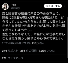 【悲報】夜職嬢さん、障害者に厳しかったwwww