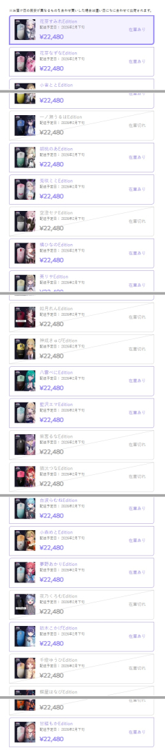 引用元: 58: Vtuberまとめ2025/10/13(月) 16:04:09.76 ぶいすぽマウス現在の格付け 90: Vtuberまとめ2025/10/13(月) 16:05:45.44 >>58 これくろむとかあしゅみとか元の在庫が少ないだけやろ 99: Vtuberまとめ2025/10/13(月) 16:06:14.51 >>58 どうみても在庫数が違うわな 108: Vtuberまとめ2025/10/13(月) 16:06:29.57 >>58 やっぱぶいすぽでも処女のほうが人気なんやね 115: Vtuberまとめ2025/10/13(月) 16:06:41.67 >>58 分かりやすく在庫数に差があるわ 120: Vtuberまとめ2025/10/13(月) 16:06:59.88 >>58 これさ どちらかというと不人気な人が売り切れてない? 129: Vtuberまとめ2025/10/13(月) 16:07:13.69 >>58 マウスで22000円は高すぎだろ 139: Vtuberまとめ2025/10/13(月) 16:07:47.61 >>58 のあってもうあんま人気無いの? 145: Vtuberまとめ2025/10/13(月) 16:08:01.70 >>58 ピンクは手が伸びない傾向やな、 188: Vtuberまとめ2025/10/13(月) 16:09:50.59 >>129 みこちが使ってるの25000円のマウスだぞ…