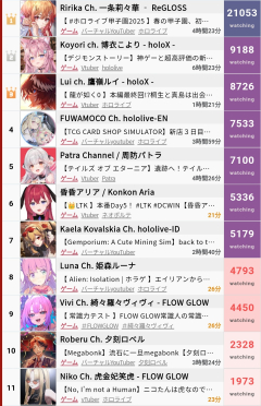 引用元: 116: Vtuberまとめ2025/10/13(月) 17:26:30.05 現在の数字です 126: Vtuberまとめ2025/10/13(月) 17:27:04.64 >>116 ヴィヴィあかんやん 134: Vtuberまとめ2025/10/13(月) 17:27:23.47 >>116 ひょっこりルイが昨日から同接いい 142: Vtuberまとめ2025/10/13(月) 17:27:46.92 >>116 パトラ強いな 149: Vtuberまとめ2025/10/13(月) 17:28:01.54 >>116 ルイ見つかったな 172: Vtuberまとめ2025/10/13(月) 17:29:16.48 >>116 ルイは完全に固定ルイ友掴んでるな 199: Vtuberまとめ2025/10/13(月) 17:30:35.71 >>116 ニコ… 218: Vtuberまとめ2025/10/13(月) 17:31:35.54 >>172 如くや馬とかのコンテンツが強いだけ…