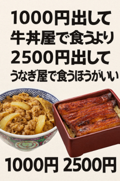 うなぎって1000円出して牛丼屋で食うより2500円出してうなぎ屋で食うほうがいいよな