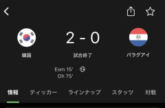 12: 名無し@サポーター 2025/10/14(火) 21:39:42.55韓国2-0パラグアイ結局初戦が全力で移動があって中3日はコンディションは落ちるね…