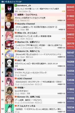引用元: 914: Vtuberまとめ2025/10/14(火) 23:16:30.91 あっこりゃあああ 933: Vtuberまとめ2025/10/14(火) 23:16:55.34 >>914 みこち>マリン>ぺこらが順位で一軍の構わんな 939: Vtuberまとめ2025/10/14(火) 23:17:06.02 >>914 加藤つえーな 952: Vtuberまとめ2025/10/14(火) 23:17:21.29 >>914 男に負けんなよホロライブ 967: Vtuberまとめ2025/10/14(火) 23:17:32.41 >>914 ぺこら弱くなった 982: Vtuberまとめ2025/10/14(火) 23:17:52.53 >>914 azkiやっぱ二軍や 985: Vtuberまとめ2025/10/14(火) 23:17:55.78 >>933 コレコレ>加藤純一>みこちが一軍 990: Vtuberまとめ2025/10/14(火) 23:18:01.15 >>914 これがホロライブ 995: Vtuberまとめ2025/10/14(火) 23:18:09.68 >>914 ぺこら2万行かないってどういうことだよ…