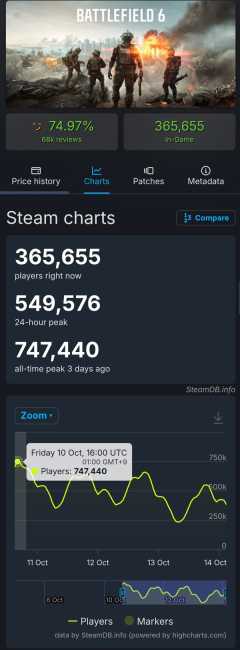 EA最後の希望バトルフィールド6さん、同接74万記録するもリリース1時間でピークが終わる