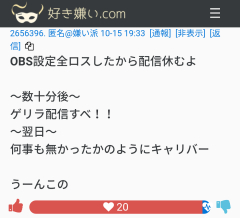 引用元: 226: Vtuberまとめ2025/10/15(水) 19:42:49.62 表に言われてんぞ…😨 236: Vtuberまとめ2025/10/15(水) 19:43:07.81 >>226 あ 239: Vtuberまとめ2025/10/15(水) 19:43:15.82 >>226 だから嫌いなんよなこいつ 241: Vtuberまとめ2025/10/15(水) 19:43:24.91 >>226 ほんま嫌いやわ 243: Vtuberまとめ2025/10/15(水) 19:43:30.56 >>226 スウジーの悪魔 そりゃすうちゃんも近寄らないわ 245: Vtuberまとめ2025/10/15(水) 19:43:32.89 >>226 嫌いな理由が詰まってる 246: Vtuberまとめ2025/10/15(水) 19:43:33.62 >>226 何が言いたいんだ? キャリバーの設定機能したんだから余裕だろ 247: Vtuberまとめ2025/10/15(水) 19:43:40.06 >>226 嫌いやわー 255: Vtuberまとめ2025/10/15(水) 19:43:48.22 >>226 ほんと嫌い 335: Vtuberまとめ2025/10/15(水) 19:47:07.59 >>226 あの、昨日の配信内でOBS設定作業配信してました… 過程全部見せてます… 380: Vtuberまとめ2025/10/15(水) 19:49:34.44 >>335 最悪の配信だったな RP強めのVTuberからしたら憎悪の対象になってんじゃね 400: Vtuberまとめ2025/10/15(水) 19:50:35.17 >>380 そんなんで憎悪すんの障碍者か野糞ぐらいだろ 410: Vtuberまとめ2025/10/15(水) 19:51:17.02 >>380 そんな奴ホロにいない 419: Vtuberまとめ2025/10/15(水) 19:51:49.59 >>380 架空の配信者作らないで自分が憎悪してると言わないからザコなんだよお前は 434: Vtuberまとめ2025/10/15(水) 19:52:44.88 >>380 そんなの言い出したらマリカの罰ゲームで他のゲームやりだす奴の方が憎悪の対象になるだろ 565: Vtuberまとめ2025/10/15(水) 19:58:33.17 >>434 自分でそういう作業をやれない兎田ペこらとかは憎悪してるかもな…