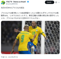 469: 名無し@サカサカ10 2025/10/15(水) 20:46:48.47 ブラジルでの日本戦の視聴率は朝7時なのにサンパウロで44%、リオでは53%だった模様…